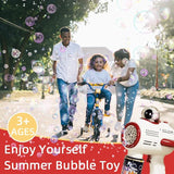 - ✅【360-Degree Leak-Proof Design】Our Bubble Blower Gun made a new leak-proof design and uses strict quality inspection to ensure that the bubbles fluid does not leak. whether your little one turns it sideways or upside down, the bubble machine won't leak and make hands dirty or sticky.