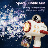 - ✅【Space Lightweight Bubble Gun with Light】Space theme bubble machine to a small and lightweight design, kids can easily carry it around, and have fun. Bubble machine with build-in led light , bubbles will brings a warm and sweet atmosphere in dark.